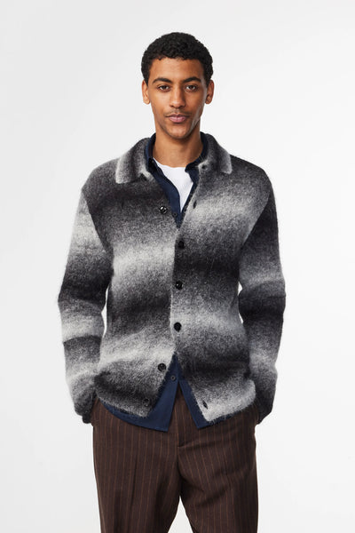 Polo cardigan knit in a straight, slightly oversized silhouette, crafted in an ultra-soft Italian alpaca blend.