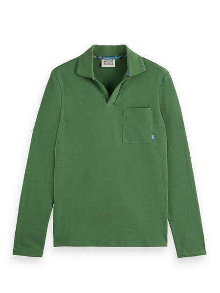Experience unparalleled comfort with this front pocket, long-sleeve polo.