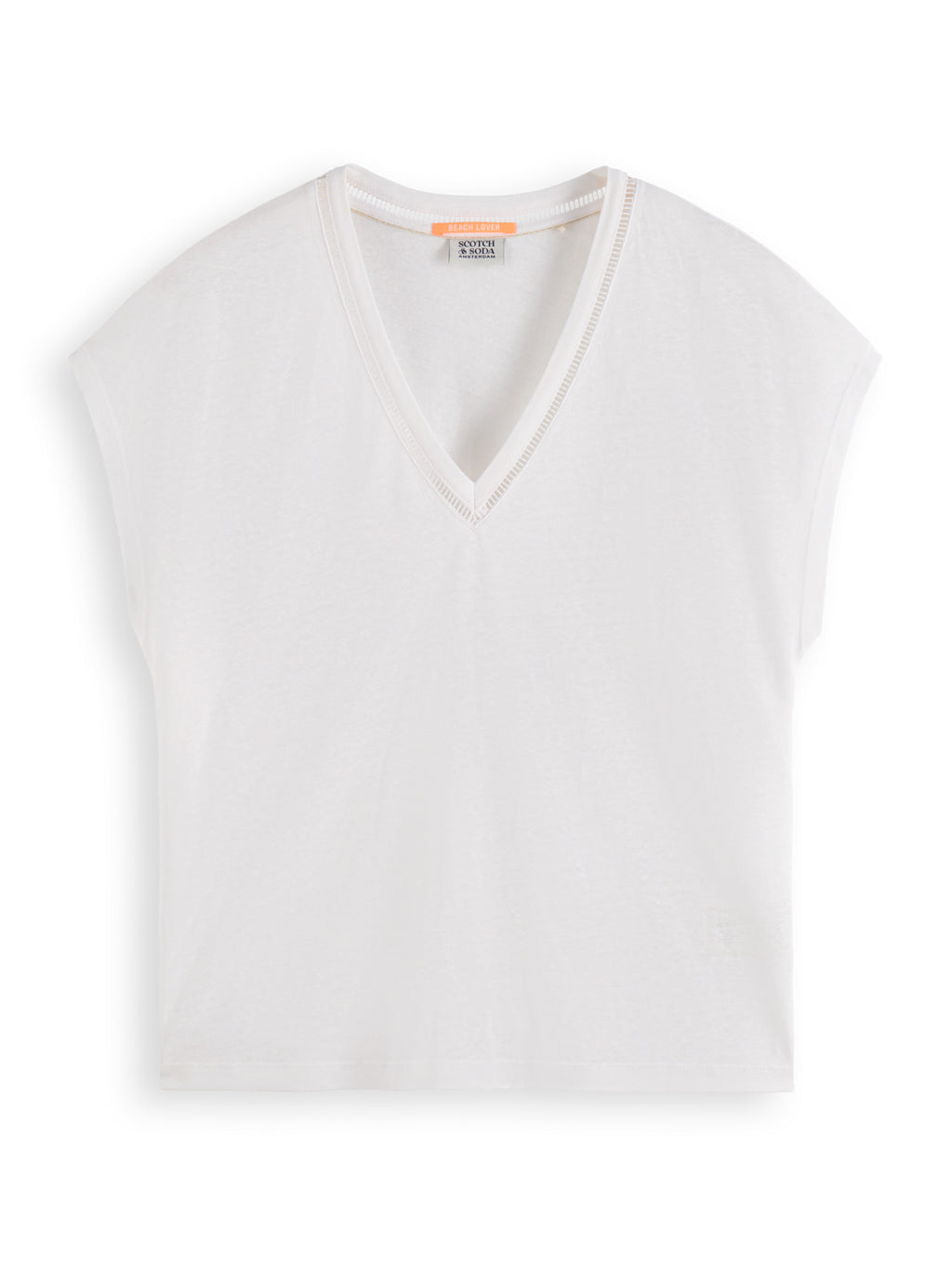 Scotch and Soda Woman Vee Neck Ladder Detail Tee - White