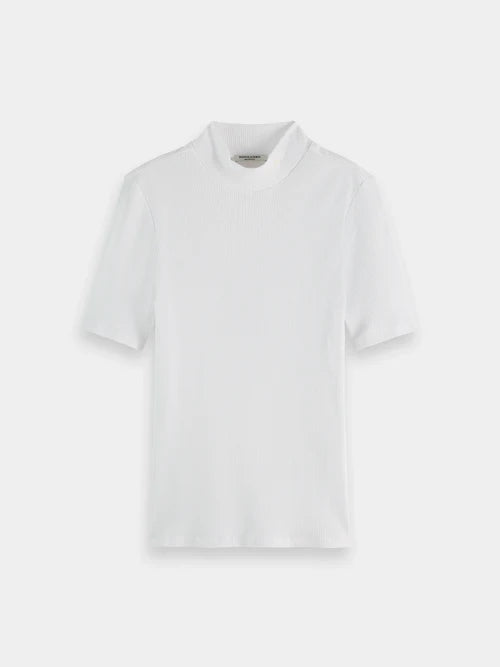 Scotch and Soda Woman Core Ribbed Mock Neck Tee - White