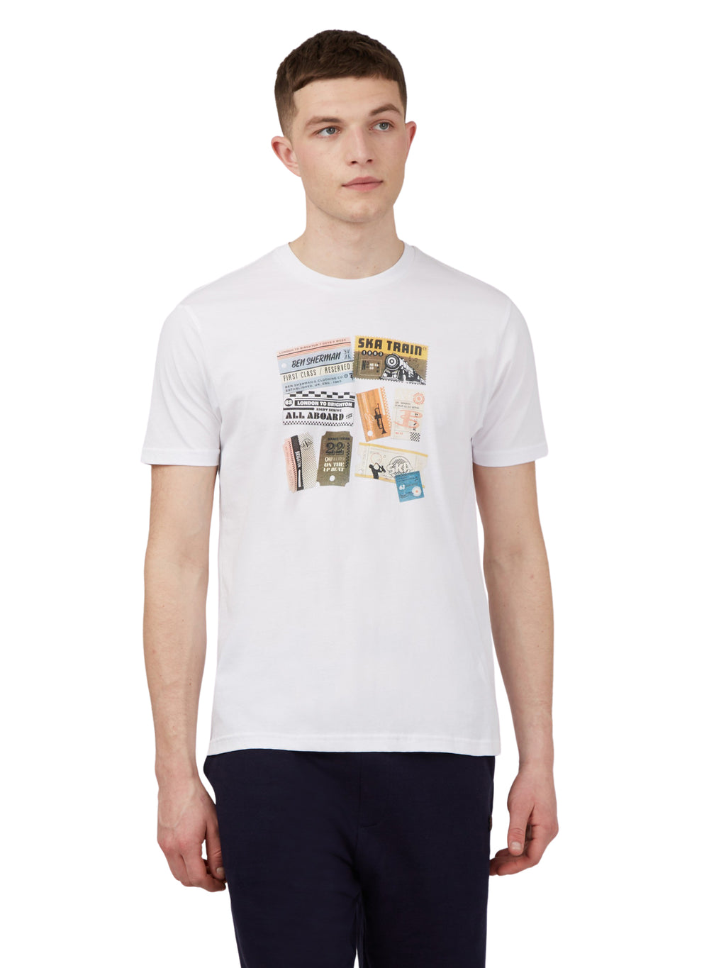 Ben Sherman Train Tickets Print Tee - White