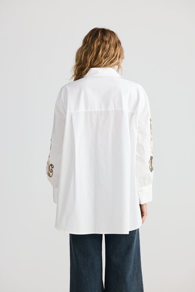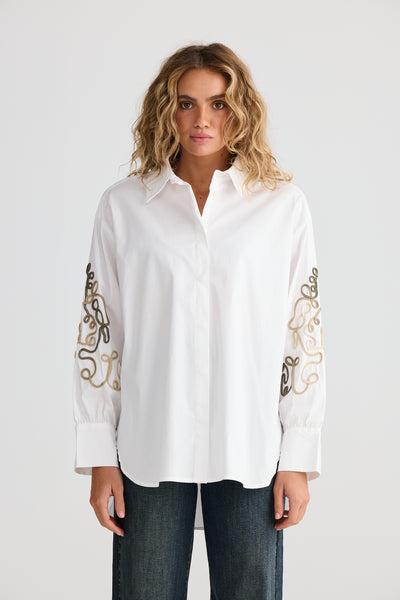 Talisman Esperance Shirt - White With Tan Embroidery