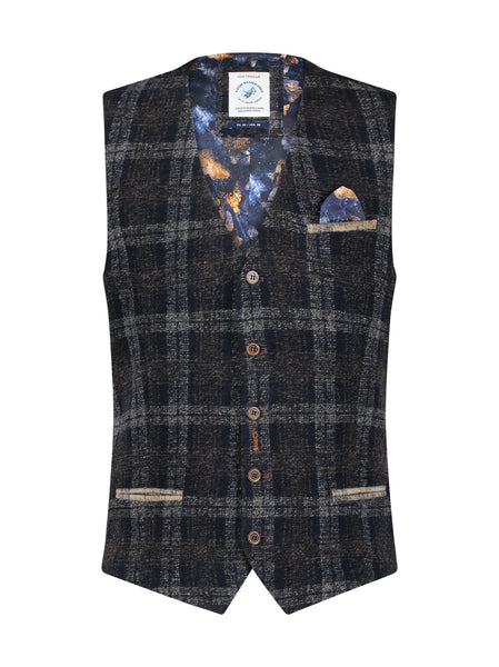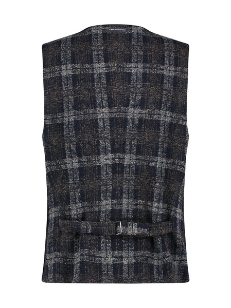 A soft Check base cloth, in Navy, is a super versatile vest, which means you will be noticed this season. Whether worn with a blazer, jacket, or shirt, you will be a good catch.