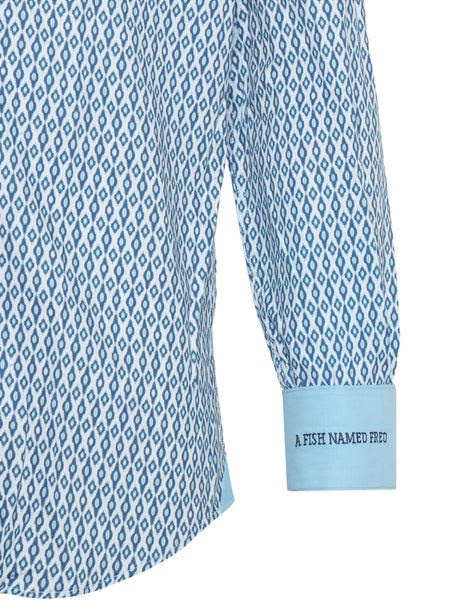 This Ikat print shirt from Mitchell McCabe and A Fish Named Fred is finely crafted in Turkey.