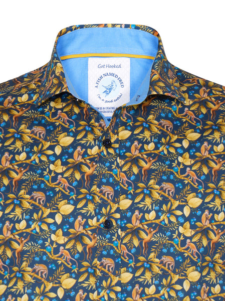 This Monkey motif print shirt from Mitchell McCabe and A Fish Named Fred is finely crafted in Turkey.