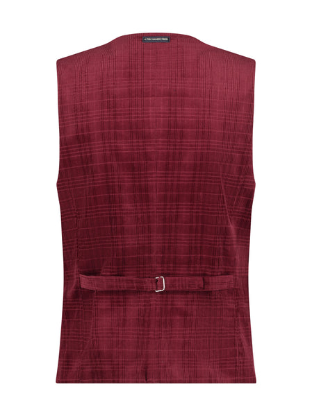 A soft Printed Cord base cloth, in Ruby, is a super versatile vest, which means you will be noticed this season. Whether worn with a blazer, jacket, or shirt, you will be a good catch.