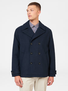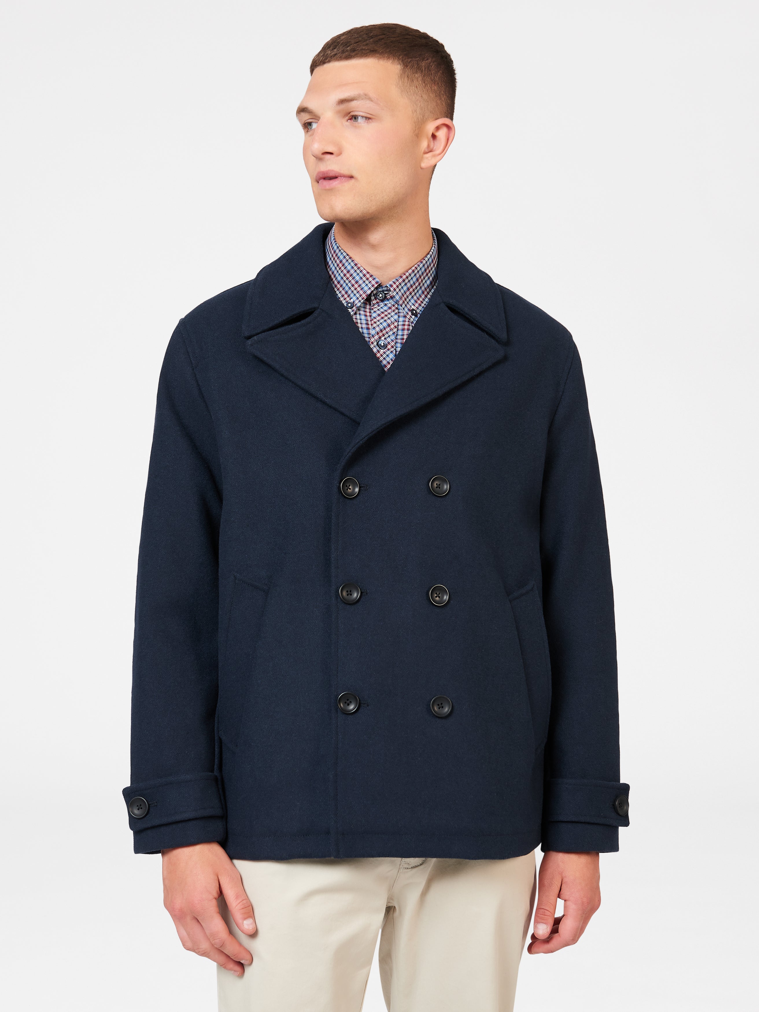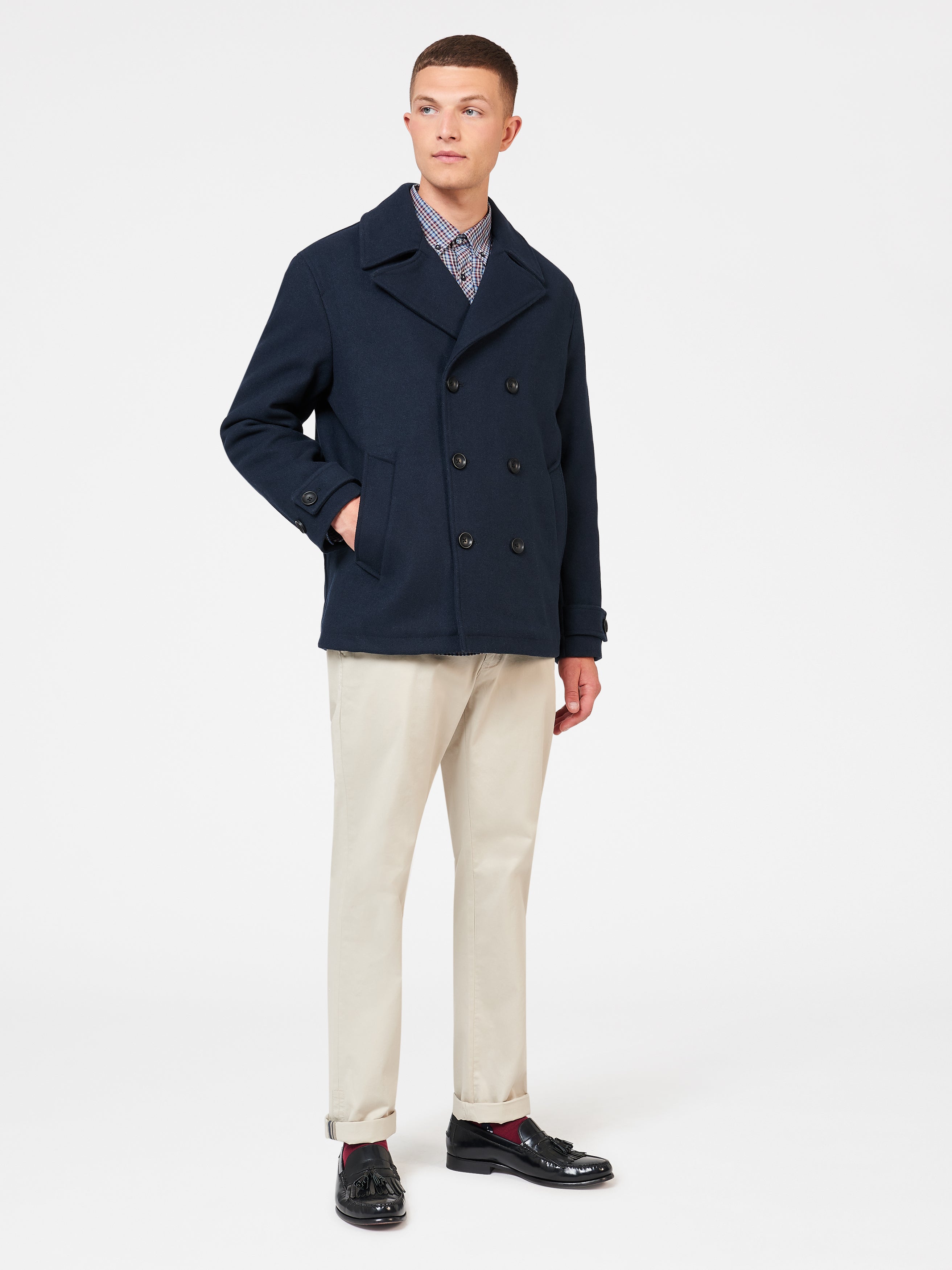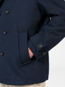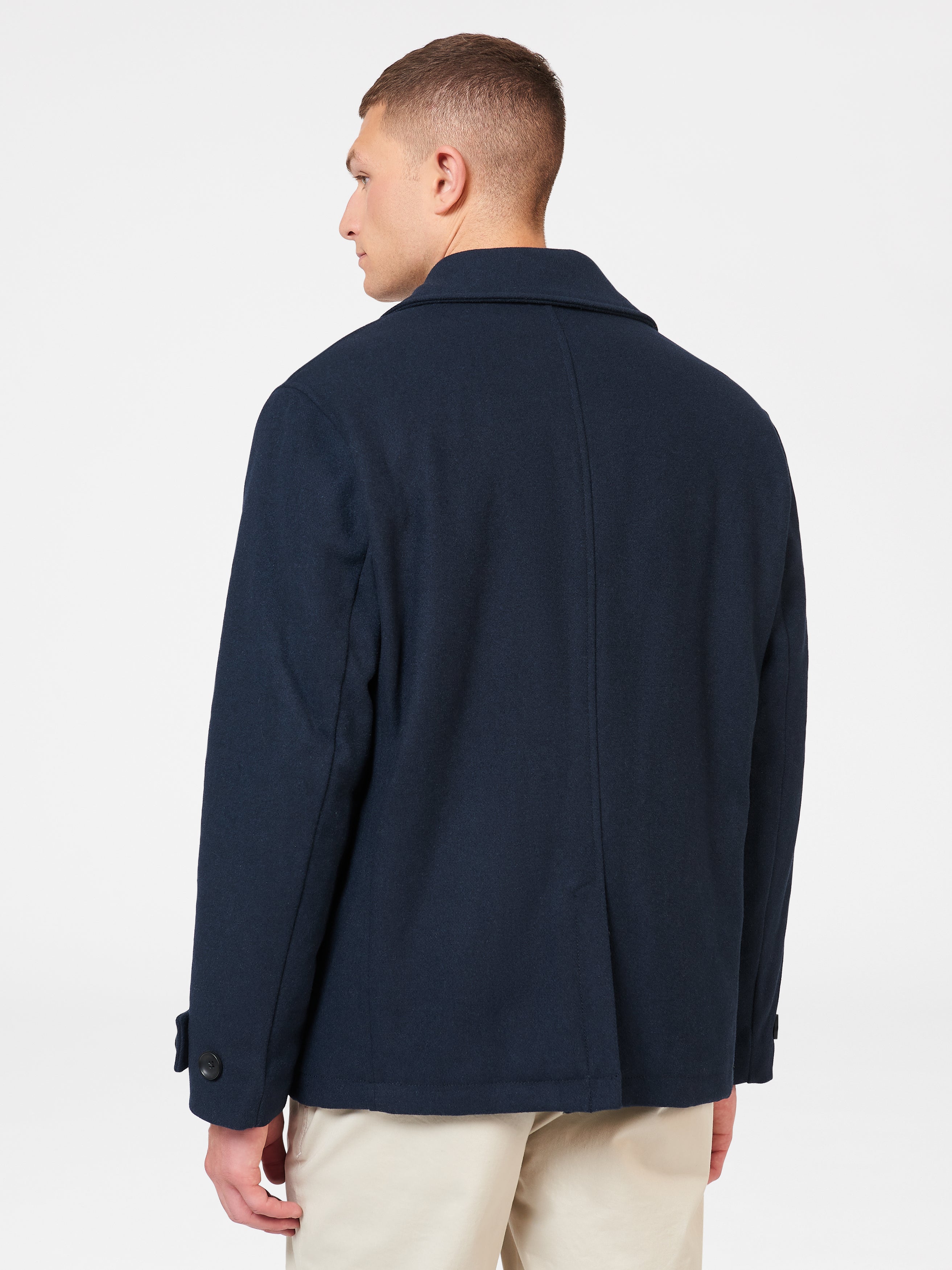 Double breasted Peacoat, wide collar with two slanted pockets at hips - lightly padded and quilted lining - awesome for the (traditional) footy outer!