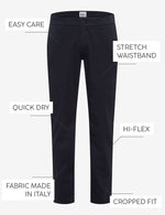The fine look of these pants is particularly due to the welt pockets. The latest innovation in casual elegance is the adjustable drawstring. Wear the drawstring visibly on the outside of the waistband to give your look more sportiness or pull it to the inside for a cleaner look.