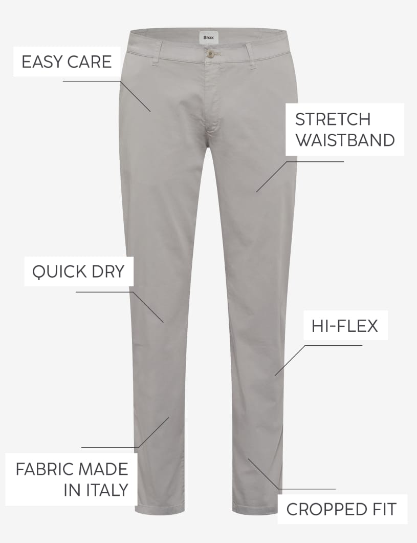Movement without limits: The extremely elastic Hi-Flex fibers guarantee unrestricted freedom of movement due to High Stretch - exclusive to BRAX. The jersey material is also shiny, smooth and soft. A compact fabric with a simple texture are the features of this versatile on-trend fabric. The colorfast and functional polyester mix also offers an excellent feel with these joggers.
