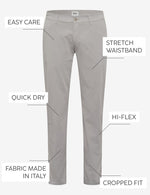 The fine look of these pants is particularly due to the welt pockets. The latest innovation in casual elegance is the adjustable drawstring. Wear the drawstring visibly on the outside of the waistband to give your look more sportiness or pull it to the inside for a cleaner look.