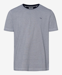 This sporty-look tee features fine stripes and a contrast neck binding.