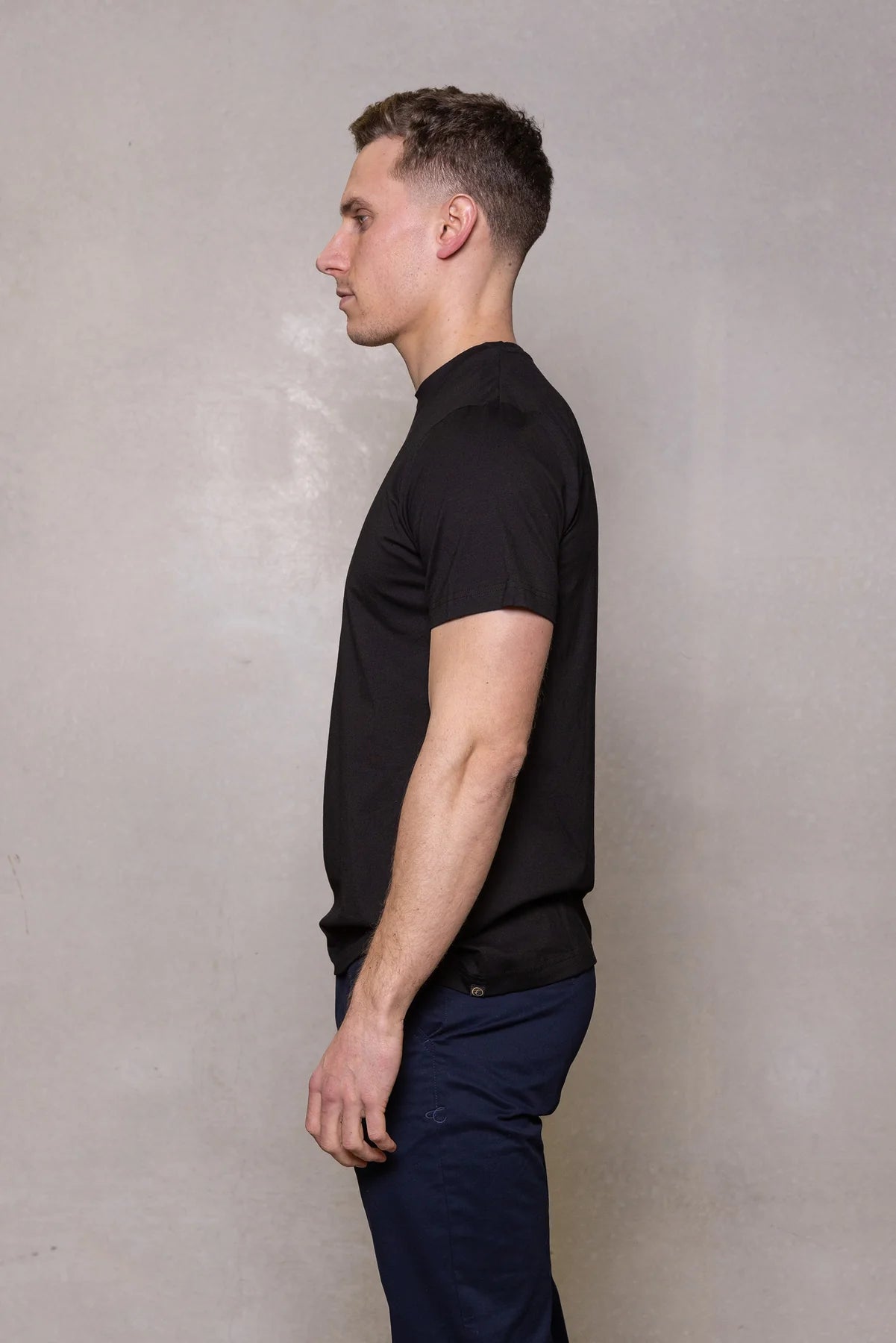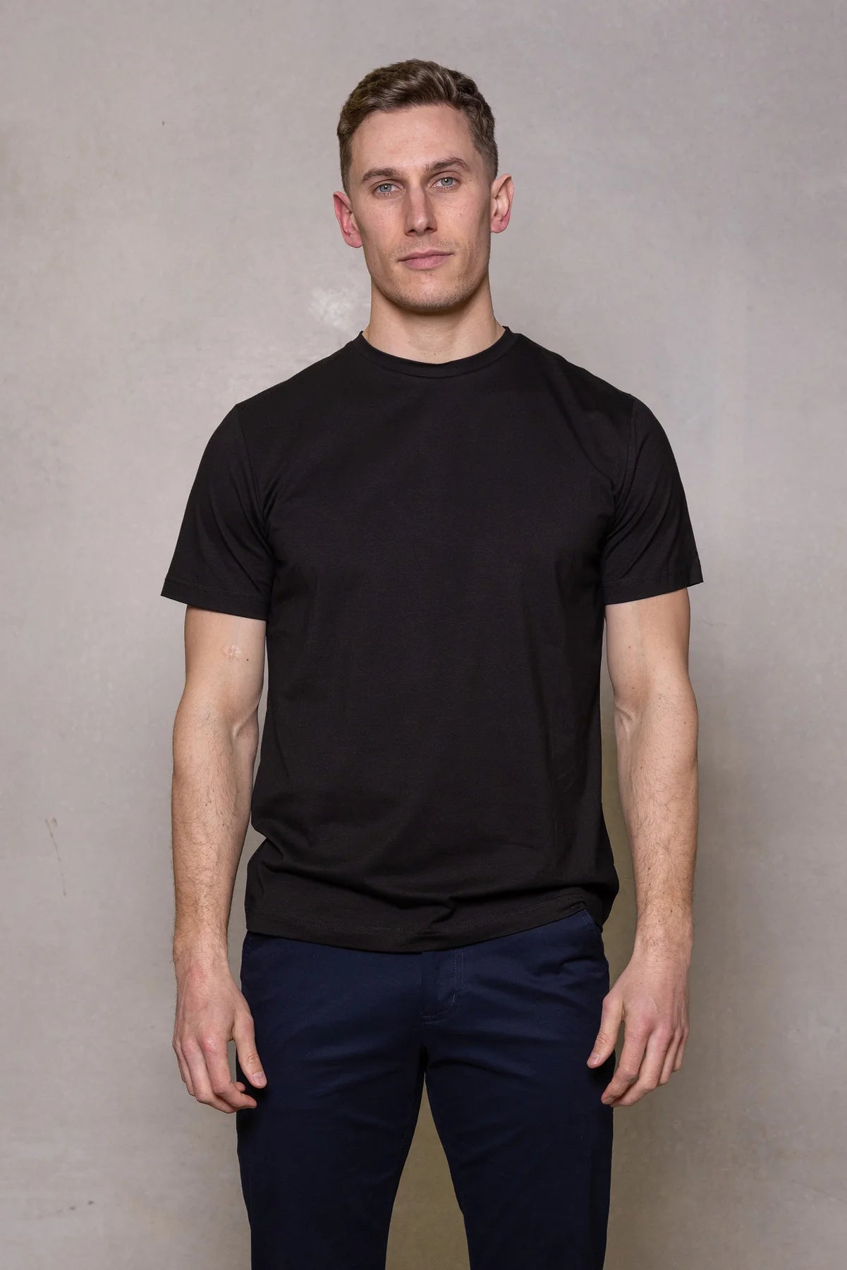 This Cutler tee is part of our Mitchell McCabe Essentials range. It is crafted from the finest stretch cotton and is available in two base colours: White and Black.