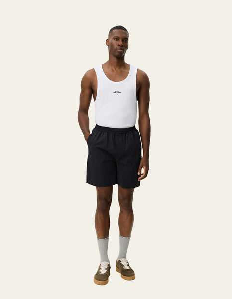 Track shorts in a technical fabric for an easy wearing sporty vibe. The Raphael Shorts come with an elastic drawstring waist and tonal printed lettering.