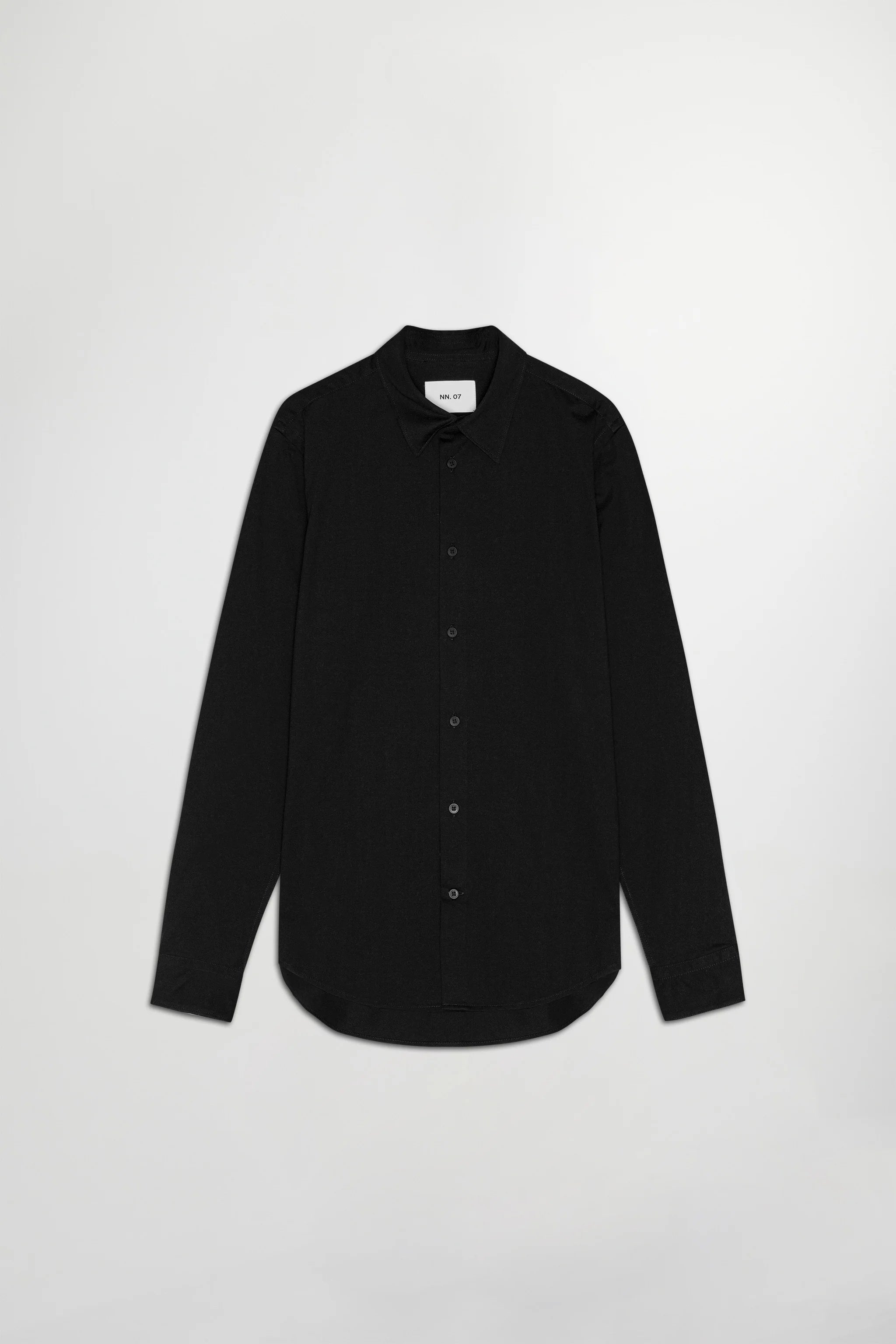 Minimalistic single jersey shirt crafted in an organic cotton blend. It is designed in a slim fit silhouette and topped with Mother-of-Pearl buttons.