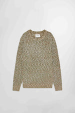 Long sleeve crewneck sweater knit in a half-cardigan stitch, crafted in 100% Cotton.
