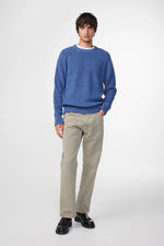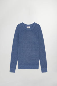 Long sleeve crewneck sweater knit in a half-cardigan stitch, crafted in 100% Cotton.