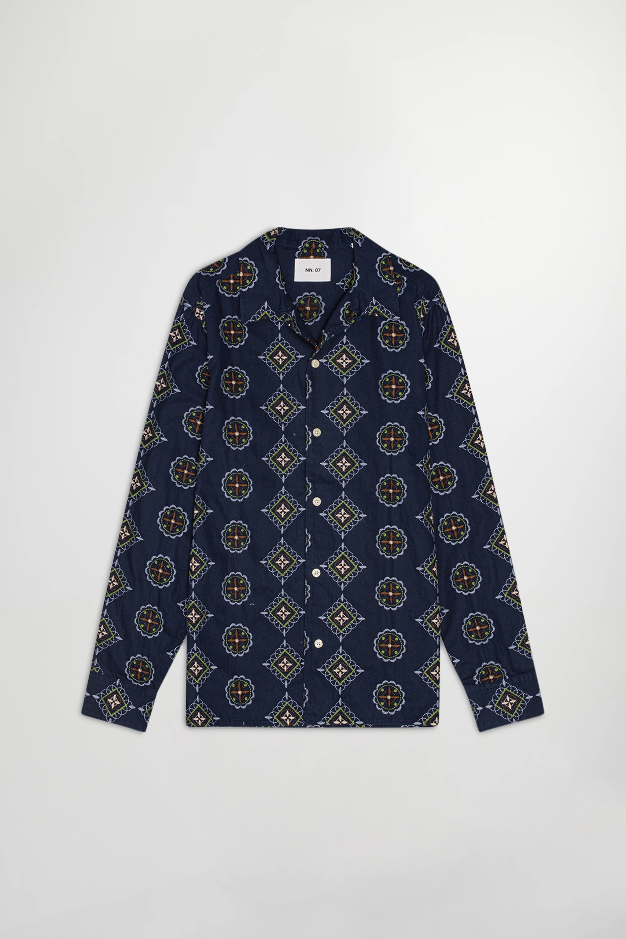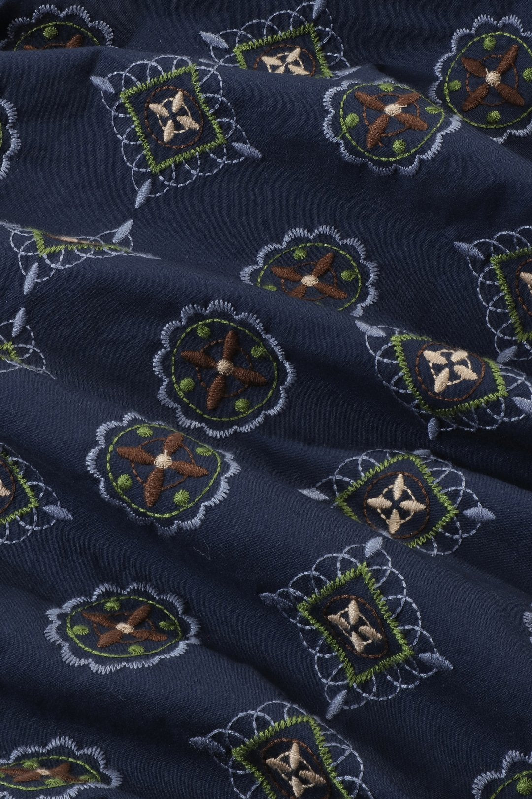 Overshirt crafted in cotton poplin with all-over embroidery, designed with an open collar and single chest pocket and topped with classic shirting buttons.
