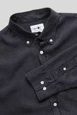 No Nationality speciality item is the Levon Tencel garment-dyed shirt. Tencel contains Lyocell fibres, composed of a natural material, namely wood pulp.