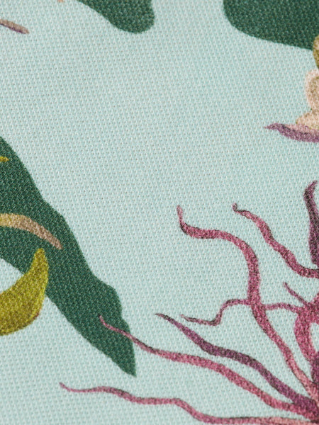 Unleash your adventurous side with our bold coral reef camo print polo.