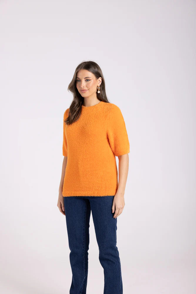 Two T's Fluffy Short Sleeve Crew Knit - Tangerine